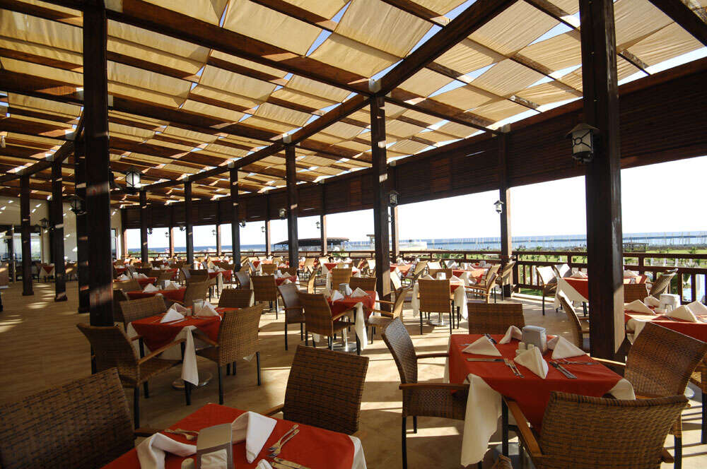 All inclusive: reggeli, ebéd és vacsora büférendszerben, késői reggeli, gyermekbüfé, délutáni kávé és sütemények, fagylalt (meghatározott időpontban), gözleme, éjféli snack (23:00-00:00), éjjeli minibüfé (01:00-07:00), 3 a’la carte étterem (ázsiai, török, olasz, a tartózkodás során 1 alkalommal, előzetes asztalfoglalással), helyi alkoholos és alkoholmentes italok a nap 24 órájában, minibár érkezéskor sörrel, vízzel, üdítőkkel feltöltve, később csak vízzel feltöltve.