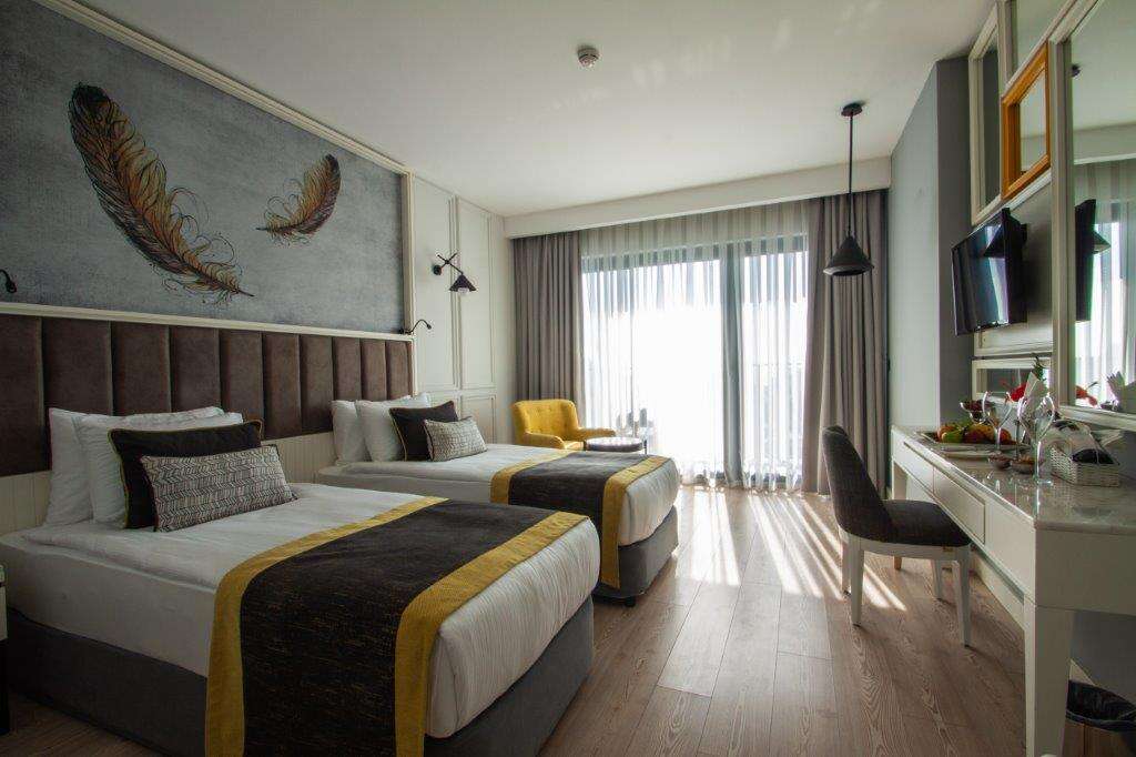 A 2 épületben elhelyezkedő, 140 kényelmes szoba mindegyike rendelkezik központi légkondicionálóval, műholdas LCD TV-vel, telefonnal, Wifi elérhetőséggel, minibárral, hajszárítóval, fürdőköpennyel és papuccsal, valamint erkéllyel. A standard szobák 27 nm-esek.