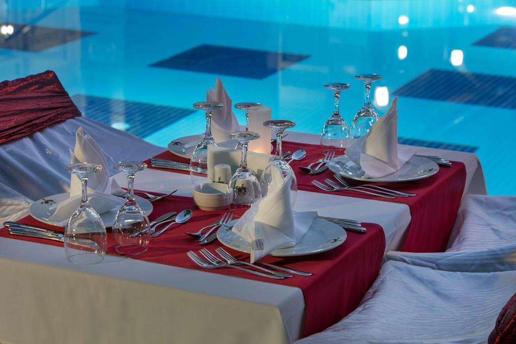 Tartózkodás alatt 1 alkalommal az A’la carte éttermek egyikében (előfoglalás szükséges legalább 1 nappal előtte a szálloda Guest Relation részlegén) ingyenesen lehet étkezni.
